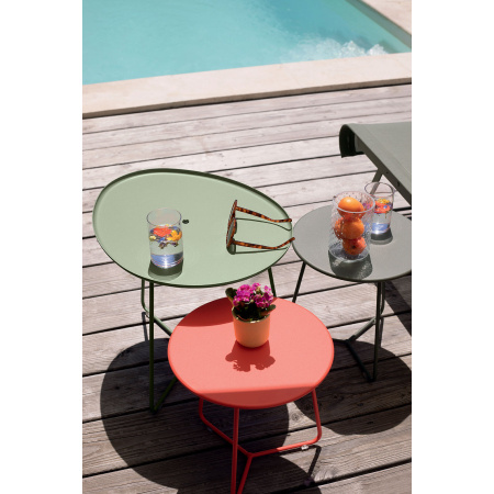 Vous rêviez d’une table basse avec plateau amovible ? Fermob l’a fait ! La Cocotte est ingénieuse, pratique et… économique puisqu’elle vous évite l’achat d’un plateau : il est intégré à votre table d’appoint ! Cocotte vous simplifie la vie ! Visualisez-vous, lors d’un apéro entre amis : vous apportez les verrines préparées en cuisine, grâce au plateau amovible de votre petite table ronde en métal. Vous le placez sur son pied et, hop, la party peut commencer ! A l’inverse, quand la soirée touche à sa fin, en un tour de main, vous débarrassez tout : tellement astucieux… Petite mais costaude, la Cocotte ! Elle vit aussi bien en extérieur qu’à l’intérieur, résiste à tous les temps et supporte des charges élevées. Quand on sait que Cocotte est une table basse produite 100% en France, cela donne encore plus envie de se la procurer… Associez-la avec une ou plusieurs table(s) d’appoint de la même collection : et disposez-les en solo ou en groupe. Vous avez le choix parmi toutes les couleurs du nuancier Fermob ! Rien que ça !!! Existe en plusieurs coloris.