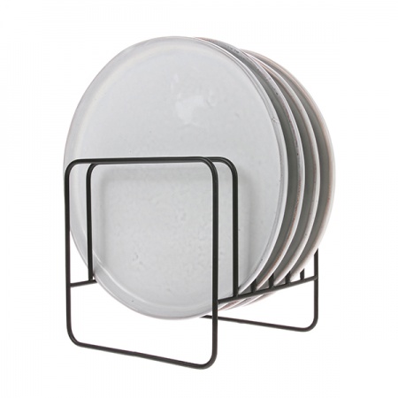 Un support à assiettes en métal noir mat. dimensions: 15x15x15cm