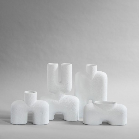 Cobra célèbre les silhouettes absurdes et ludiques du mouvement artistique Cobra des années 1960. La collection Cobra défie l'équilibre entre les formes douces et cohérentes, jouant avec les silhouettes humaines en contraste avec les composants architecturaux du bâtiment. Le design est basé sur quelques croquis naïfs de Kristian Sofus Hansen et Tommy Hyldahl, d'où proviennent les silhouettes humaines, formant ensemble une famille de quatre vases. Pour la collection Cobra, une nouvelle texture de surface à bulles a été développée, ajoutant une expression tactile et raffinée au vase.