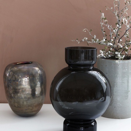 Sautez sur les tendances actuelles en utilisant du verre coloré dans la décoration de votre maison. Avec le vase Bubble de House Doctor, vous obtenez un vase décoratif qui ajoute une touche merveilleuse et élégante à la maison. Le vase est en verre et a un joli aspect transparent avec une transparence grisâtre donnant au vase un aspect simple et magnifique. La forme organique du vase ajoute également une élégance magnifique et naturelle à la maison, et c'est donc le détail parfait sur la table de la salle à manger ou sur le rebord de la fenêtre. Placez un bouquet de fleurs fraîchement coupées dans le vase ou quelques brindilles du jardin pour créer une atmosphère chaleureuse dans votre maison. Dimensions: D17,5 cm x H25 cm. Couleur: Gris