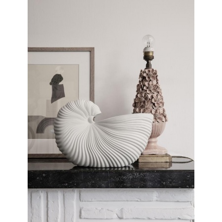 Vase en grès en forme de coquille de nautile. Qu'il soit vide ou rempli de fleurs, ce vase fusionne des formes naturelles avec un design contemporain. Avec un extérieur mat et un intérieur vitré, il ajoute des détails délicats à n'importe quelle pièce, simple et sculptural à la fois. Dimensions: L31 cm x L15 cm H20 cm. Couleur: Blanc cassé