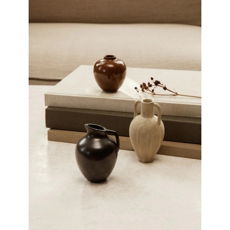 Rappelant les vases grecs antiques, le petit vase Ary Mini en porcelaine est disponible dans une sélection de formes distinctives. Variant en taille, couleur et glaçure, chacun a sa propre personnalité et une expression unique. Utilisez le mini vase Ary dans une petite nature morte décorative avec d'autres vases de la série ou seul avec des fleurs à tige unique. Couleur : Sable. Dimensions : Ø : 6,4 x H : 11,5 cm. Matière : Porcelaine émaillée. Conseils d'entretien : rincer à l'eau tiède.