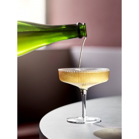Doté d'une surface magnifiquement ondulée, le set de soucoupes à champagne Ripple présente un verre teinté dans un design classique pour les vins mousseux. Chaque verre est soufflé à la bouche et fabriqué avec amour, ce qui donne une expression dynamique et énergique aux verres. Dimensions: D10,6 cm H11 cm. Contenance: 15 cl. Convient au lave-vaisselle.