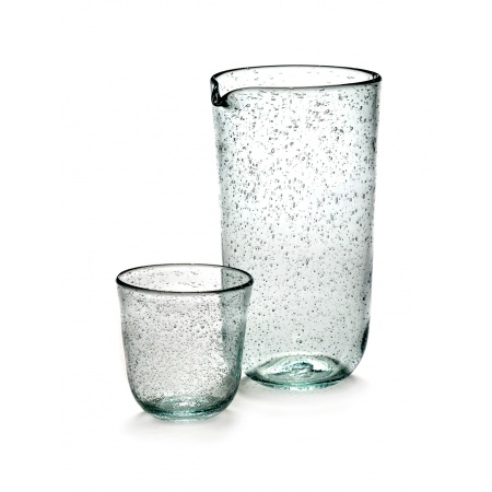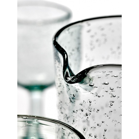 Créer une atmosphère chaleureuse, un environnement où chacun se sent chez soi et peut en profiter en toute insouciance... Après le succès de sa ligne de service de table, Pascale Naessens parvient de nouveau à traduire sa vision du plaisir, cette fois à travers une nouvelle collection de verrerie et de couverts. Des verres à eau jusqu'aux verres à vin, en passant par des verres à champagne et une carafe assortie, ils sont nés de son penchant pour la verrerie égyptienne dotée de ces bulles d’air caractéristiques. Designer: Pascale Naessens
