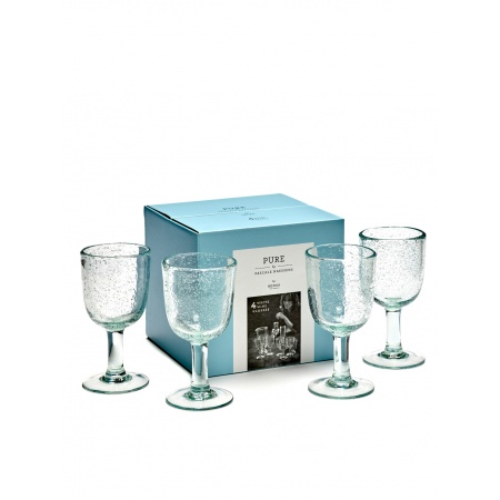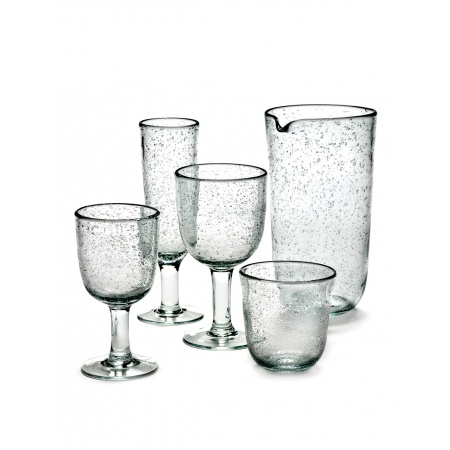 Créer une atmosphère chaleureuse, un environnement où chacun se sent chez soi et peut en profiter en toute insouciance... Après le succès de sa ligne de service de table, Pascale Naessens parvient de nouveau à traduire sa vision du plaisir, cette fois à travers une nouvelle collection de verrerie et de couverts. Des verres à eau jusqu'aux verres à vin, en passant par des verres à champagne et une carafe assortie, ils sont nés de son penchant pour la verrerie égyptienne dotée de ces bulles d’air caractéristiques. Designer: Pascale Naessens